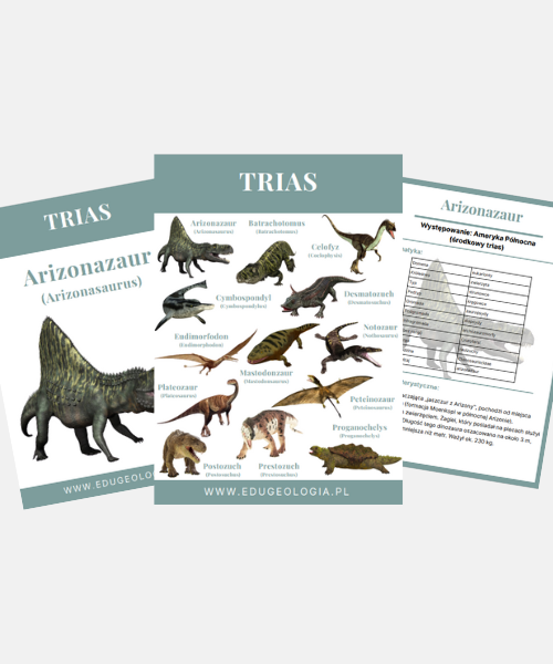 27 stron (13 kart o wymiarach:10,5 x 14,8 cm) z dinozaurami okresu triasu wraz z ciekawostkami, do własnego wydruku. Karty zaleca się drukować dwustronnie, pamiętając o tym, żeby z drukowania wyłączyć pierwszą kartę, która jest okładką. Po wydruku proponujemy karty zalaminować, aby przedłużyć ich trwałość.