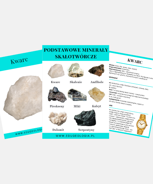 8 pięknie ilustrowanych kart przedstawiających najważniejsze minerały skałotwórcze: