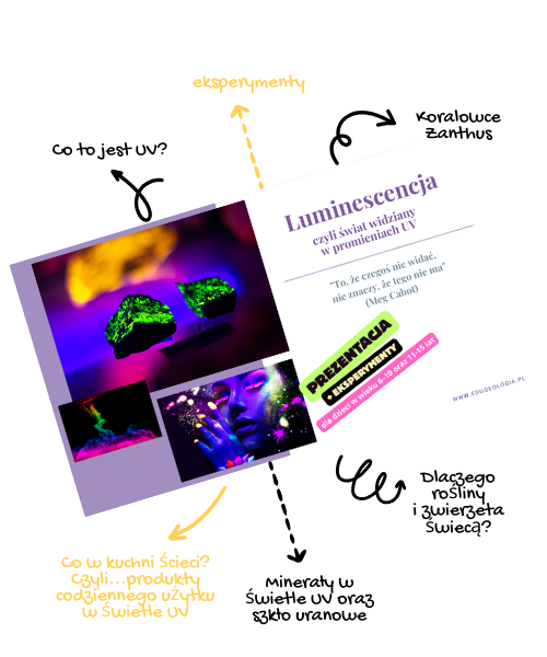 Prezentacja zawiera również zestaw prostych, bezpiecznych eksperymentów, które pozwalają zobaczyć działanie UV na własne oczy – m.in. jak różne materiały świecą w UV, jak działa krem z filtrem, czy jak sprawdzić autentyczność banknotów. Ćwiczenia te angażują uczniów i zachęcają do samodzielnego zadawania pytań oraz odkrywania świata fizyki w praktyce.